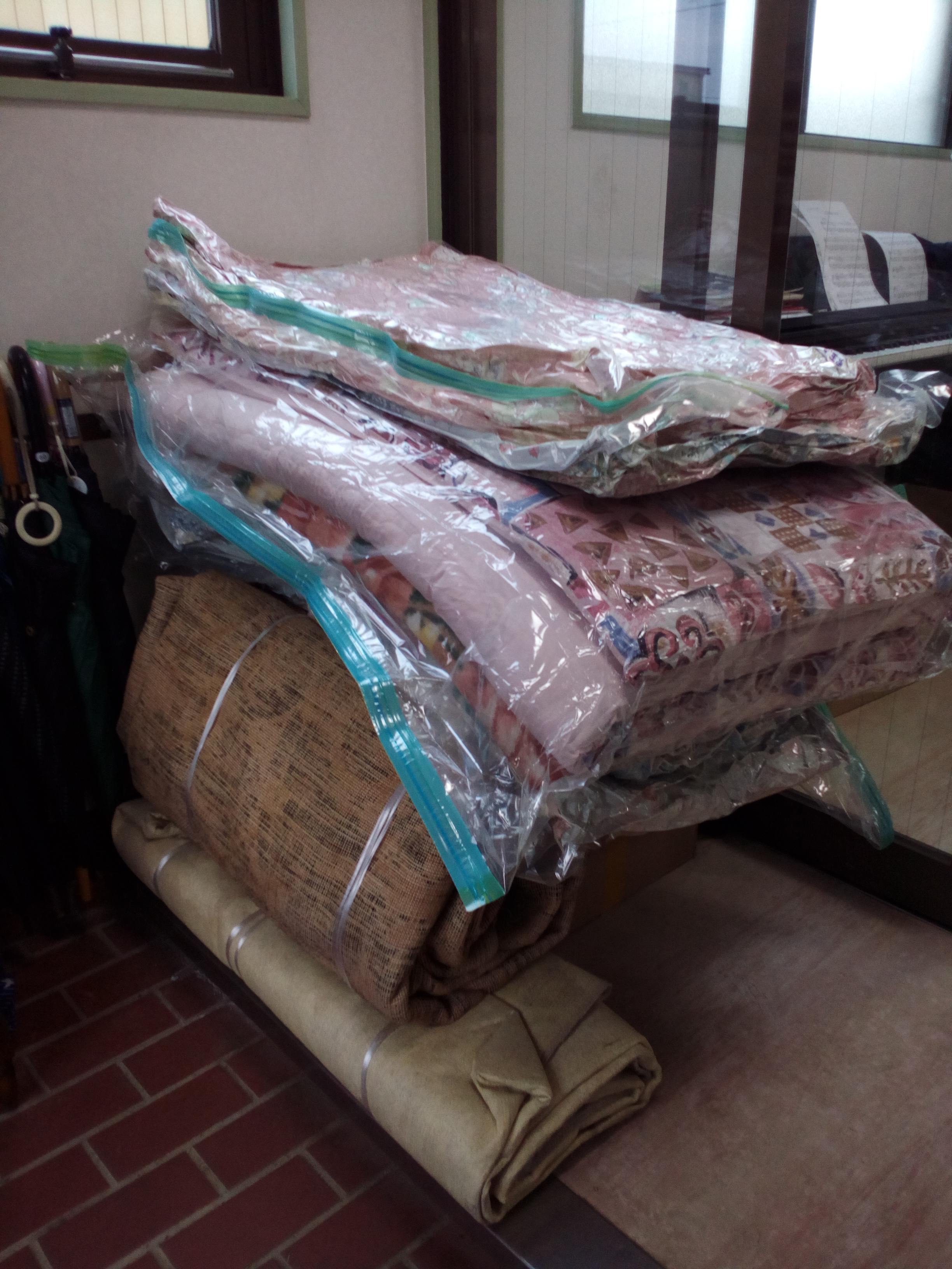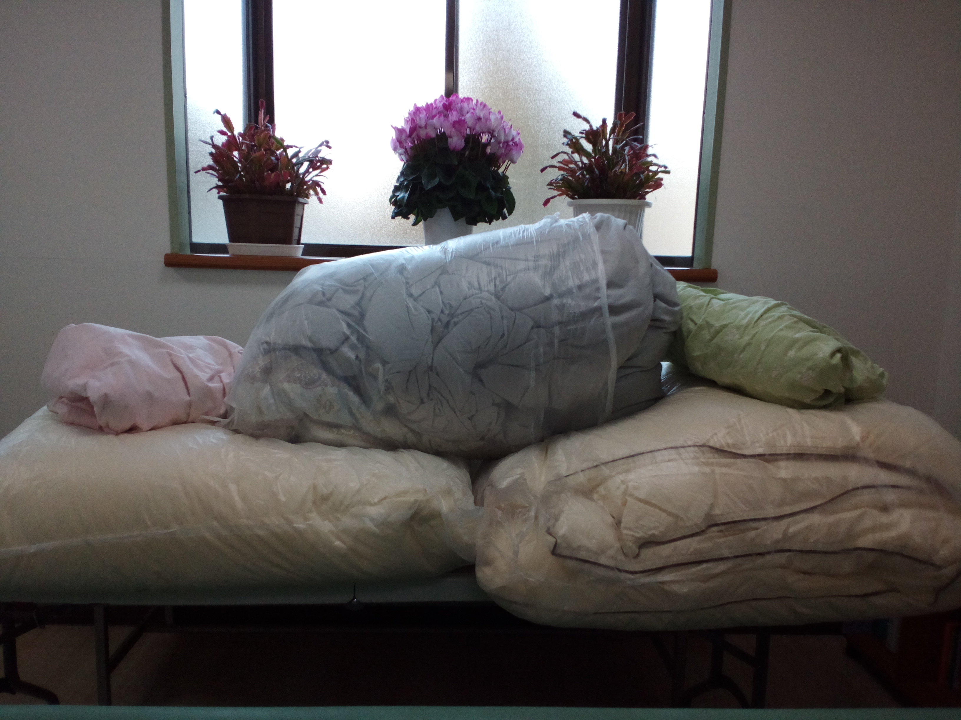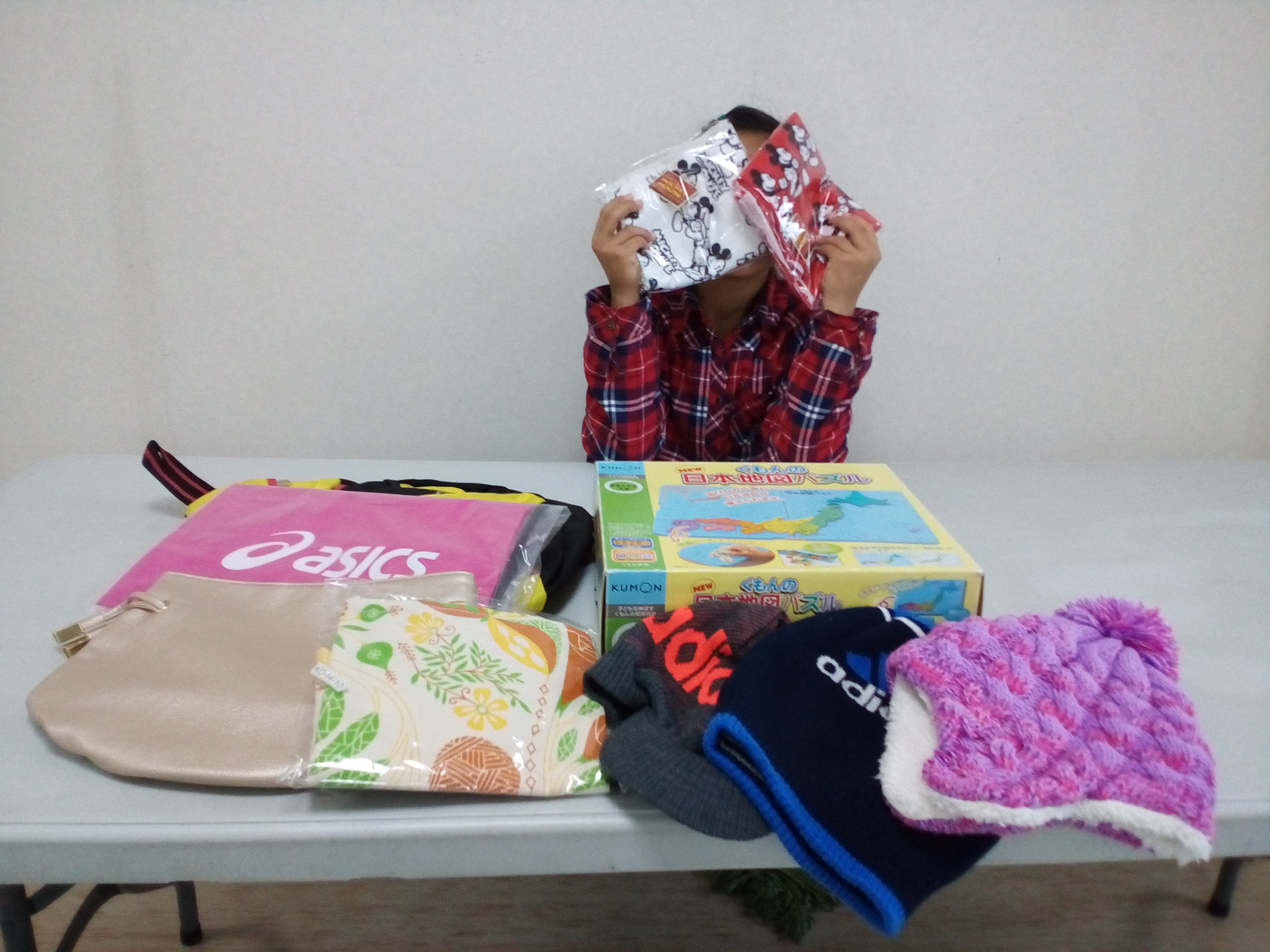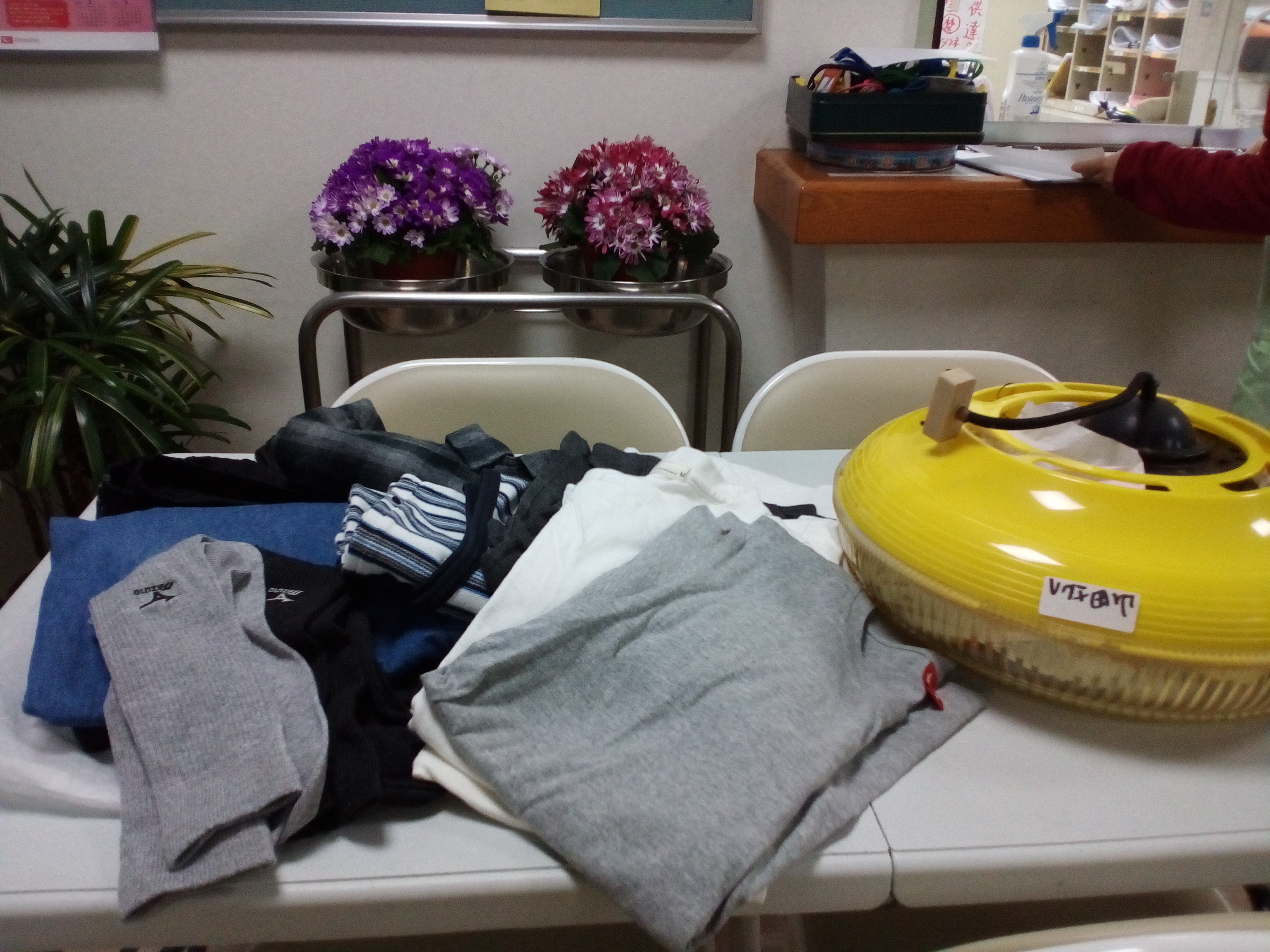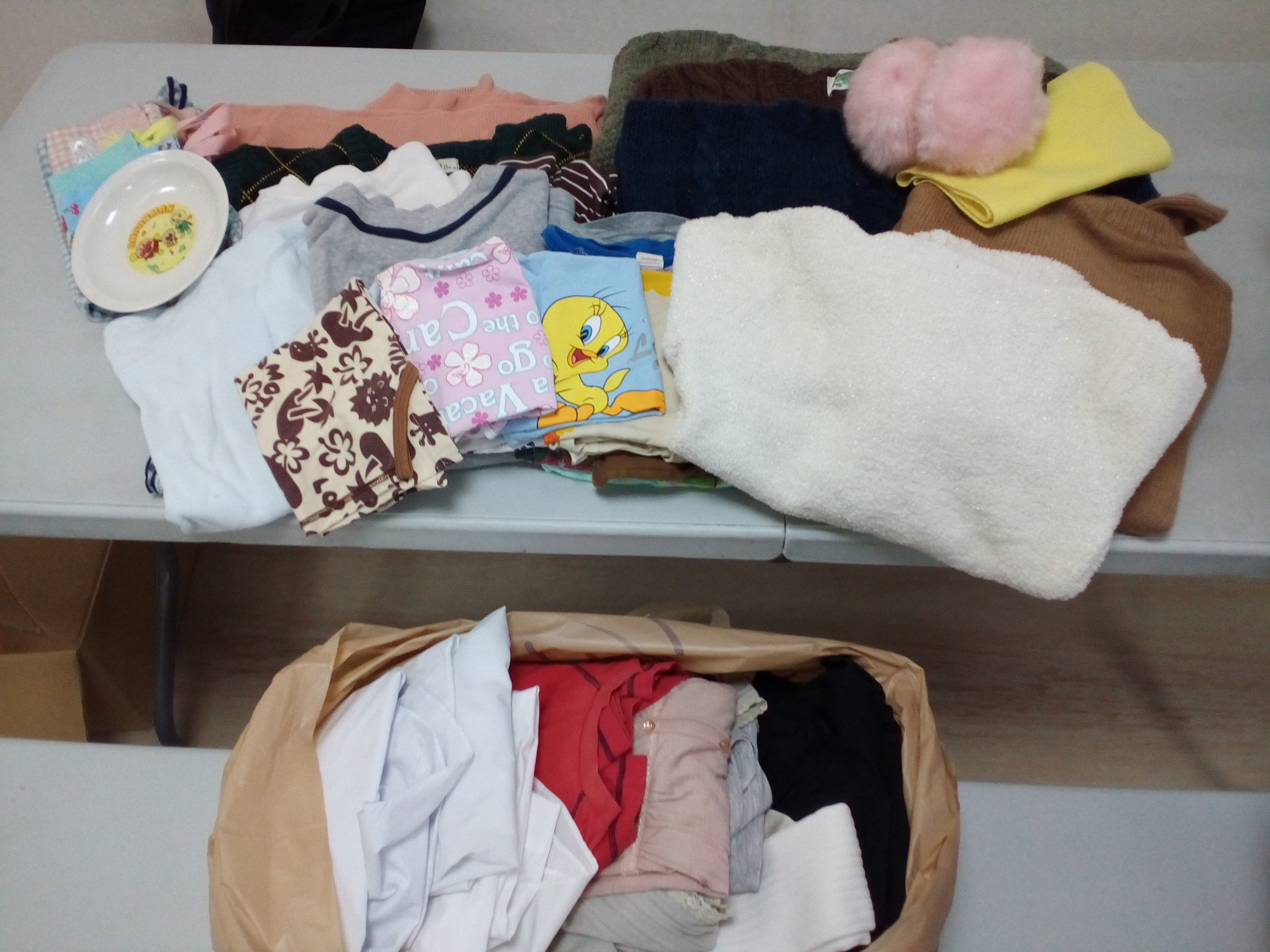 左は引っ越しをした家庭に照明器具と男子用の衣類です。