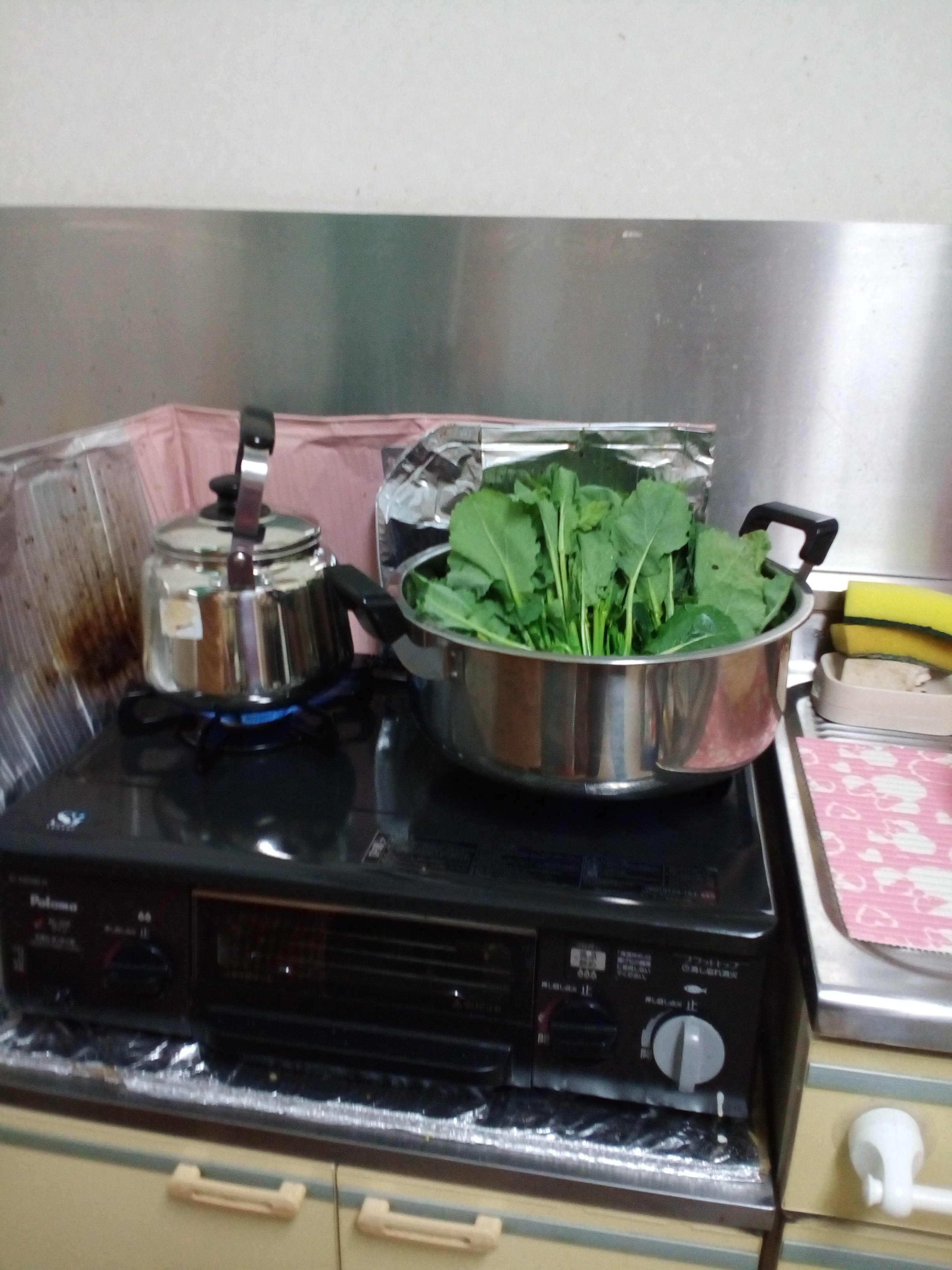 茹でているのはのらぼう菜。撮る前にお鍋の中でした。