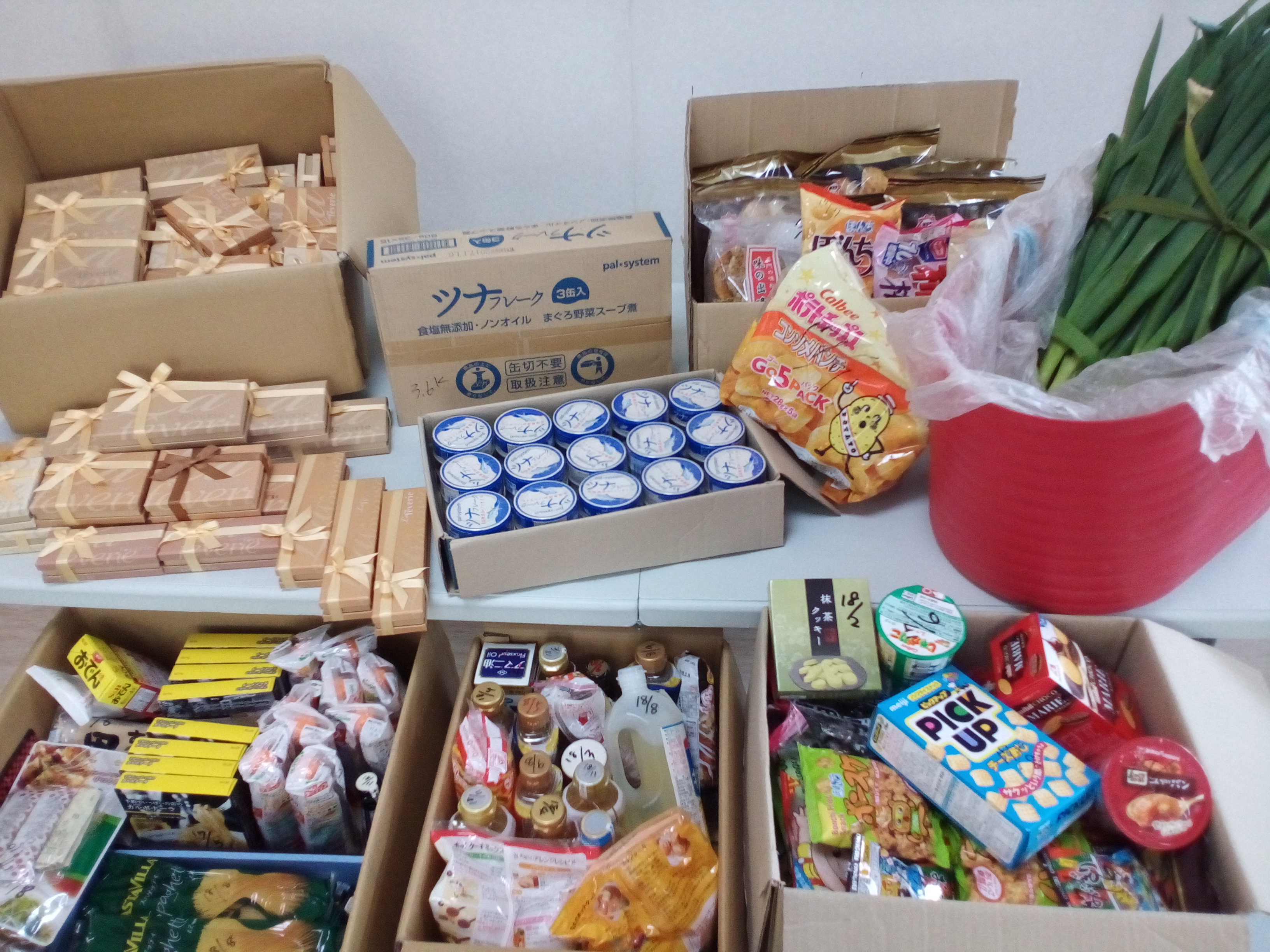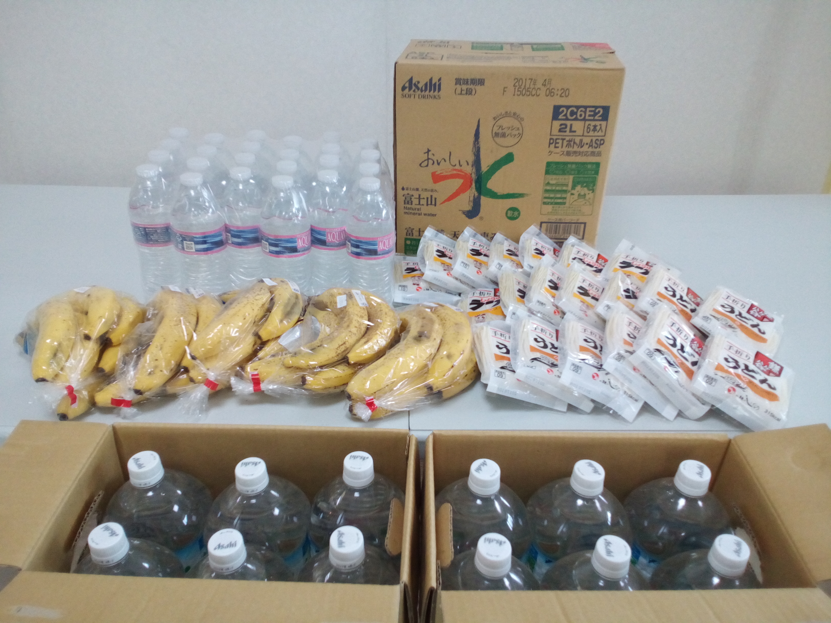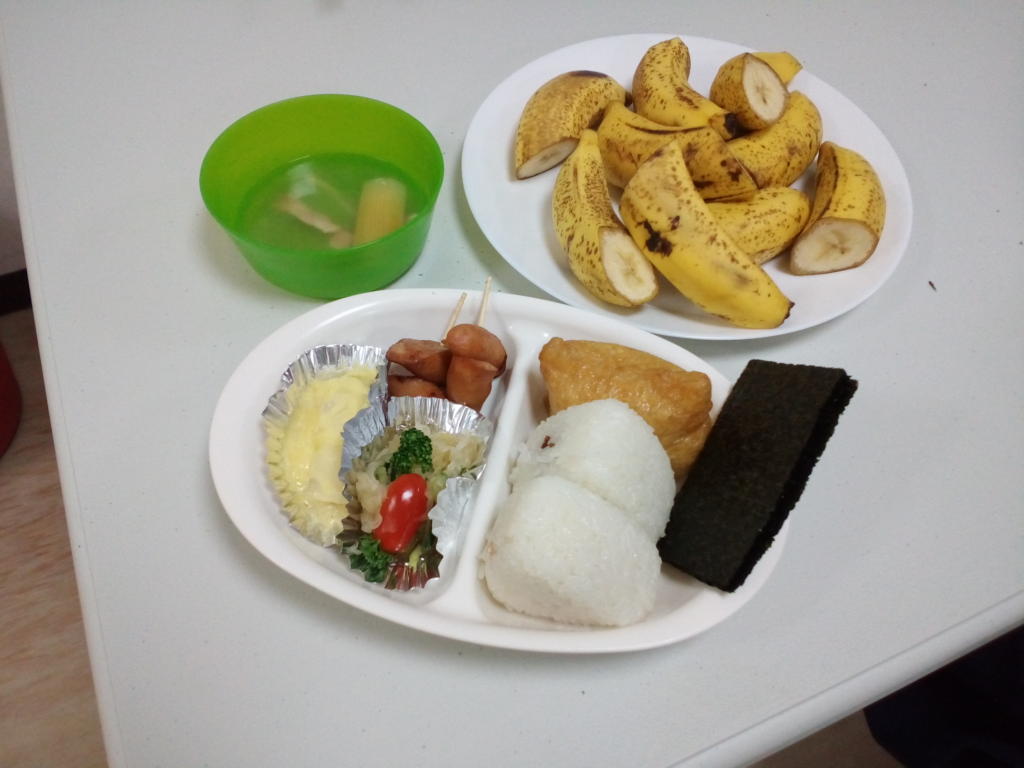 バナナに乾麺、お菓子。バナナはこの日のデザートに出しました。
