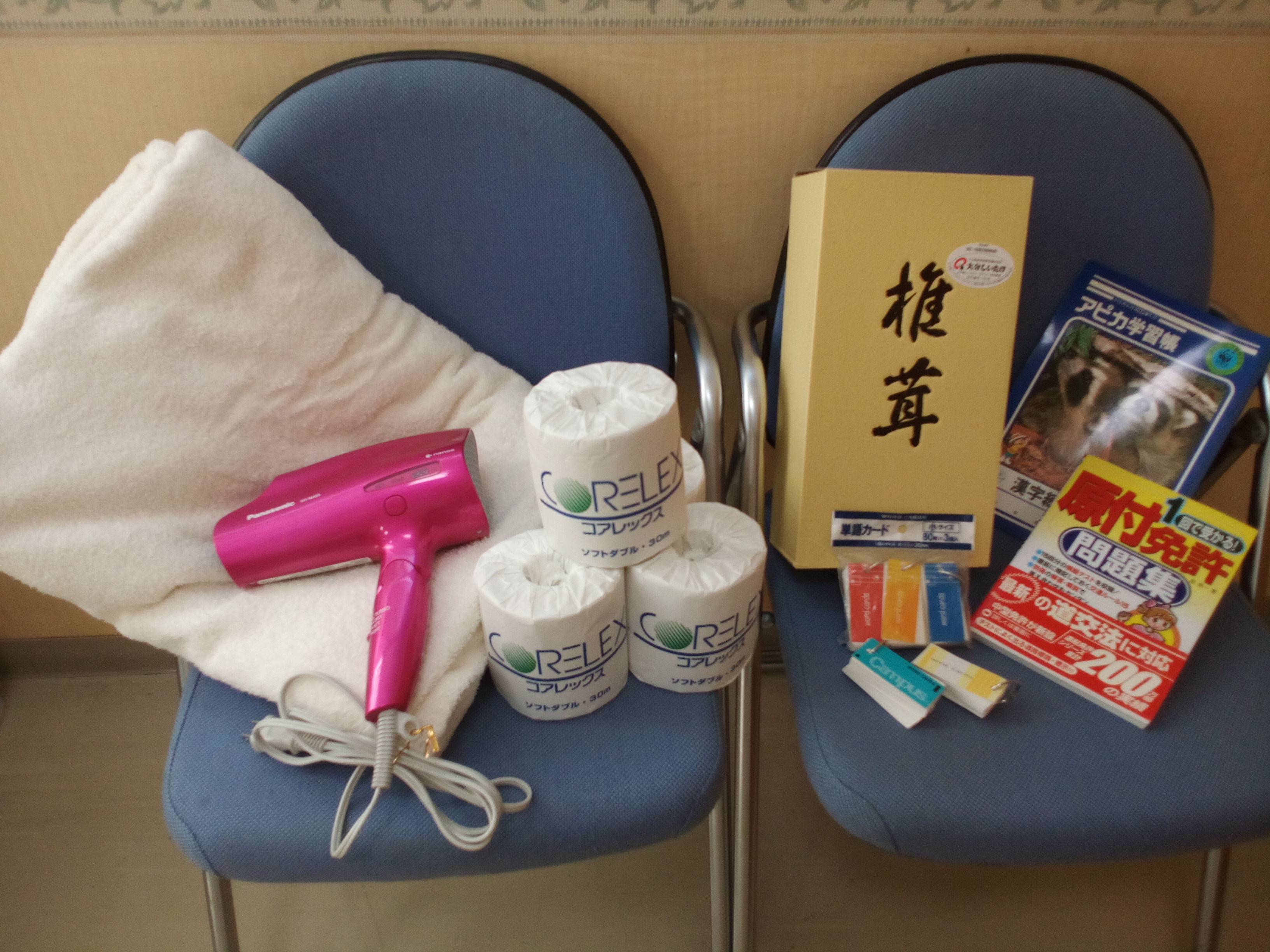 タオルケット・トイレットペーパー・ドライヤーといった