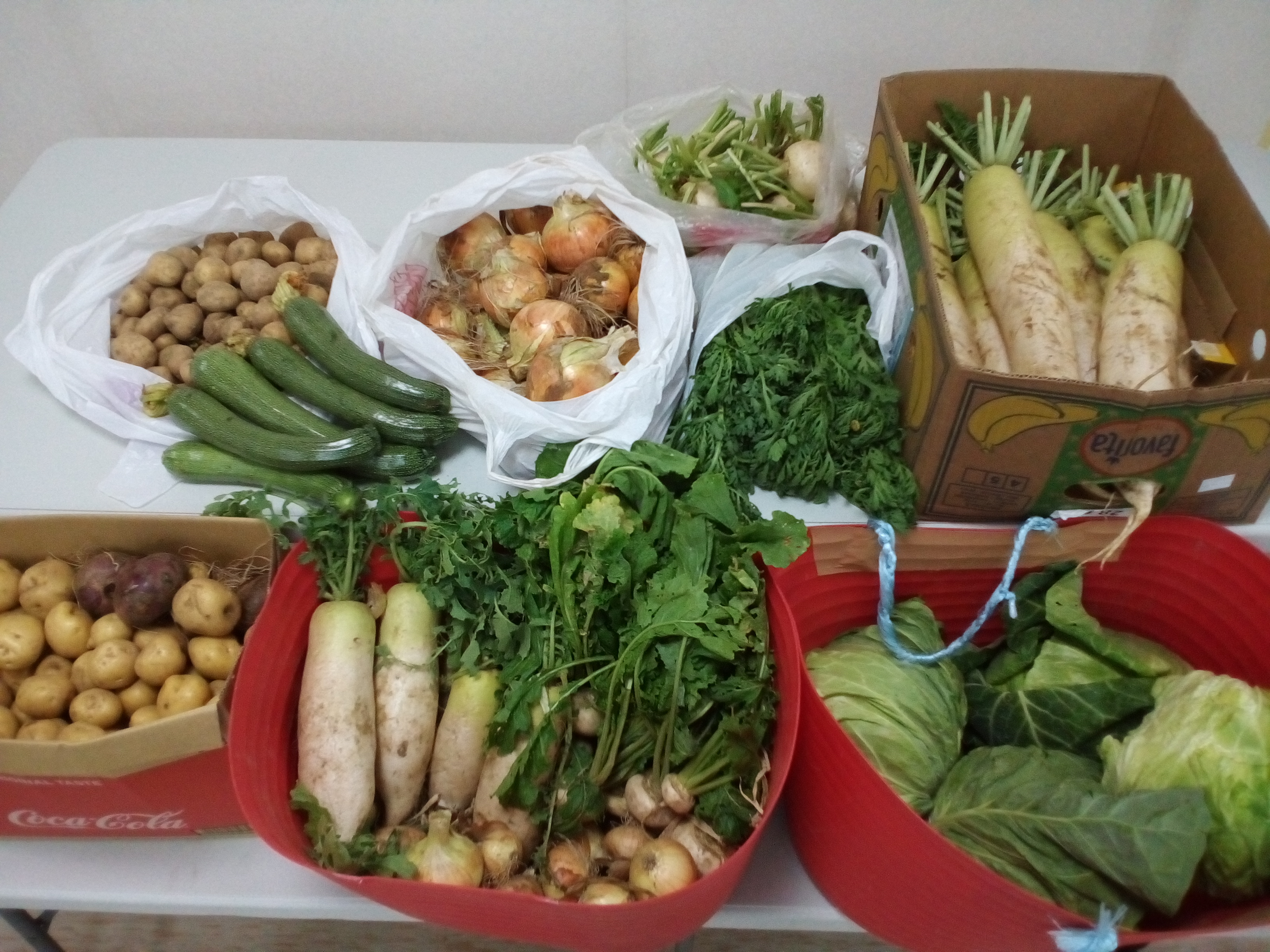 ジャガイモ・大根・カブはバナナと一緒に子ども達へおすそ分け