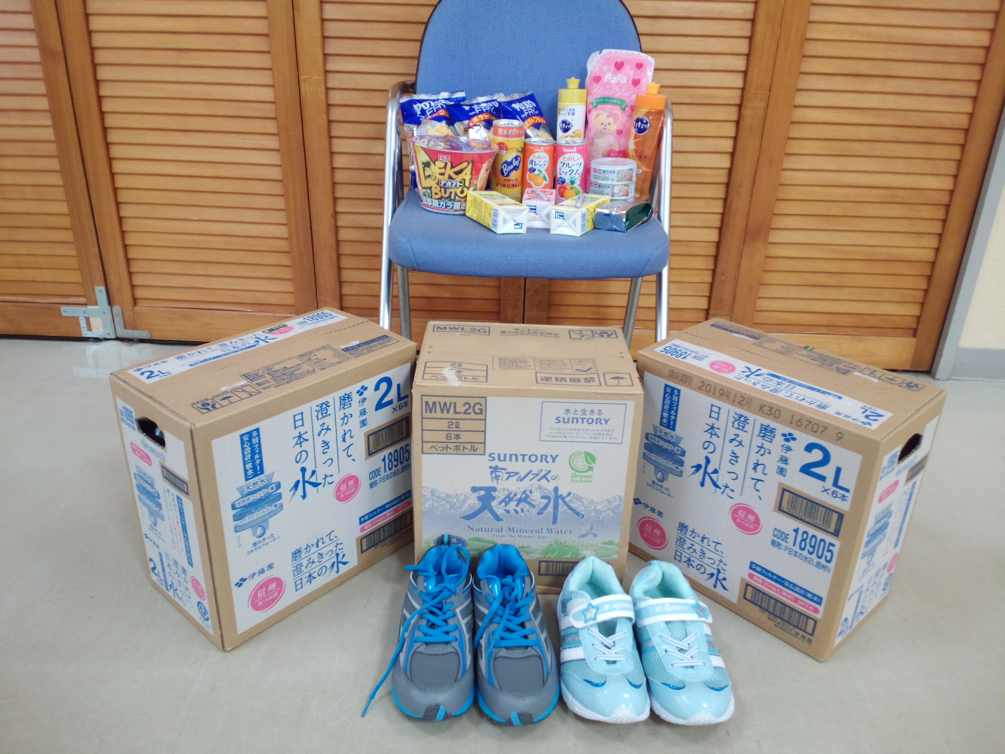 水・お菓子・ジュース・カップ麺・洗剤・靴等