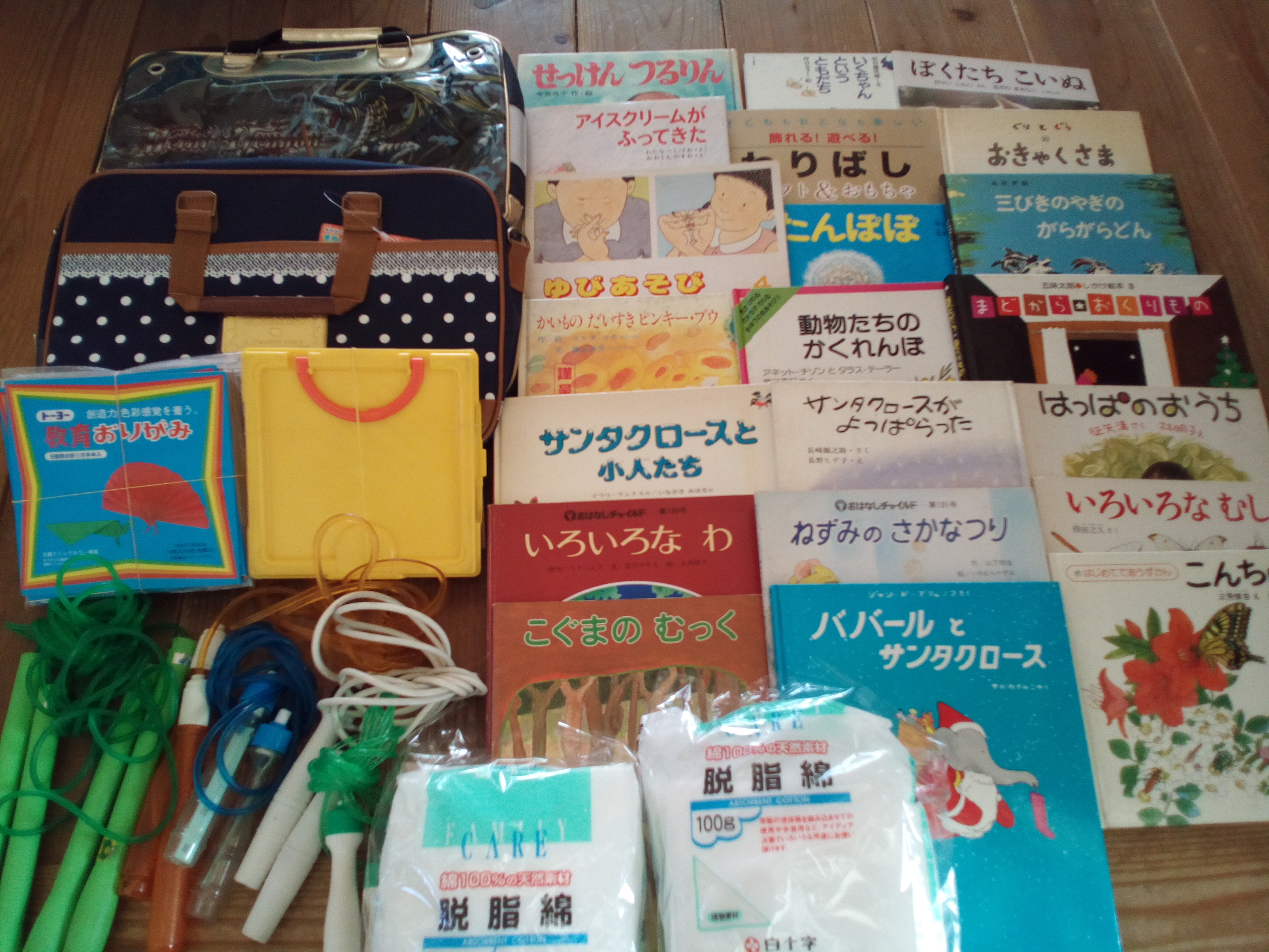 習字セットや絵本、折り紙・縄跳びなど