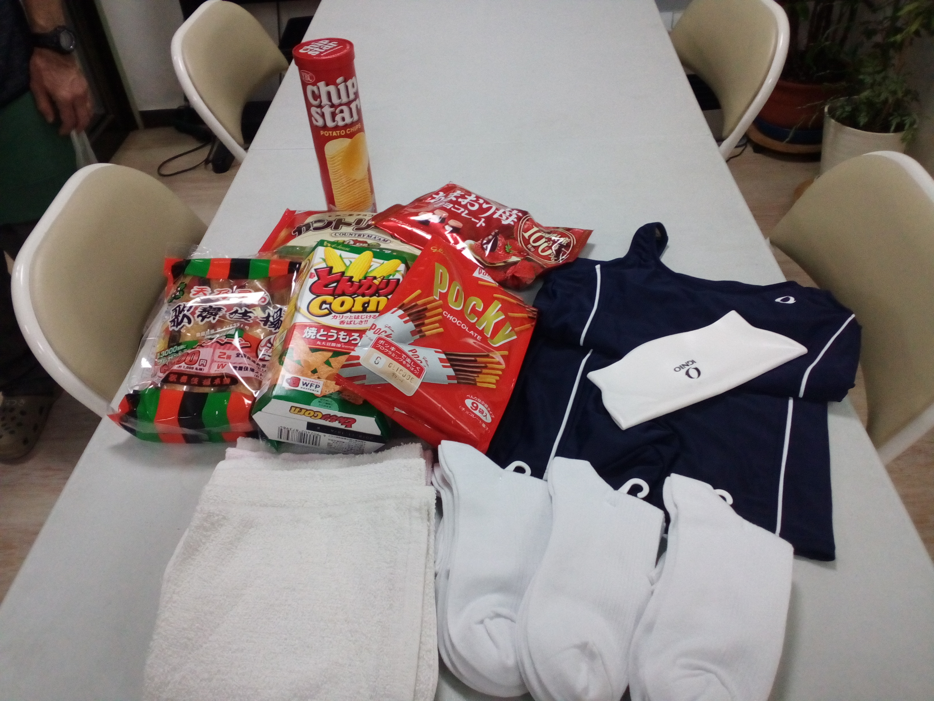 お菓子・女子用水着・靴下等をいただきました^^