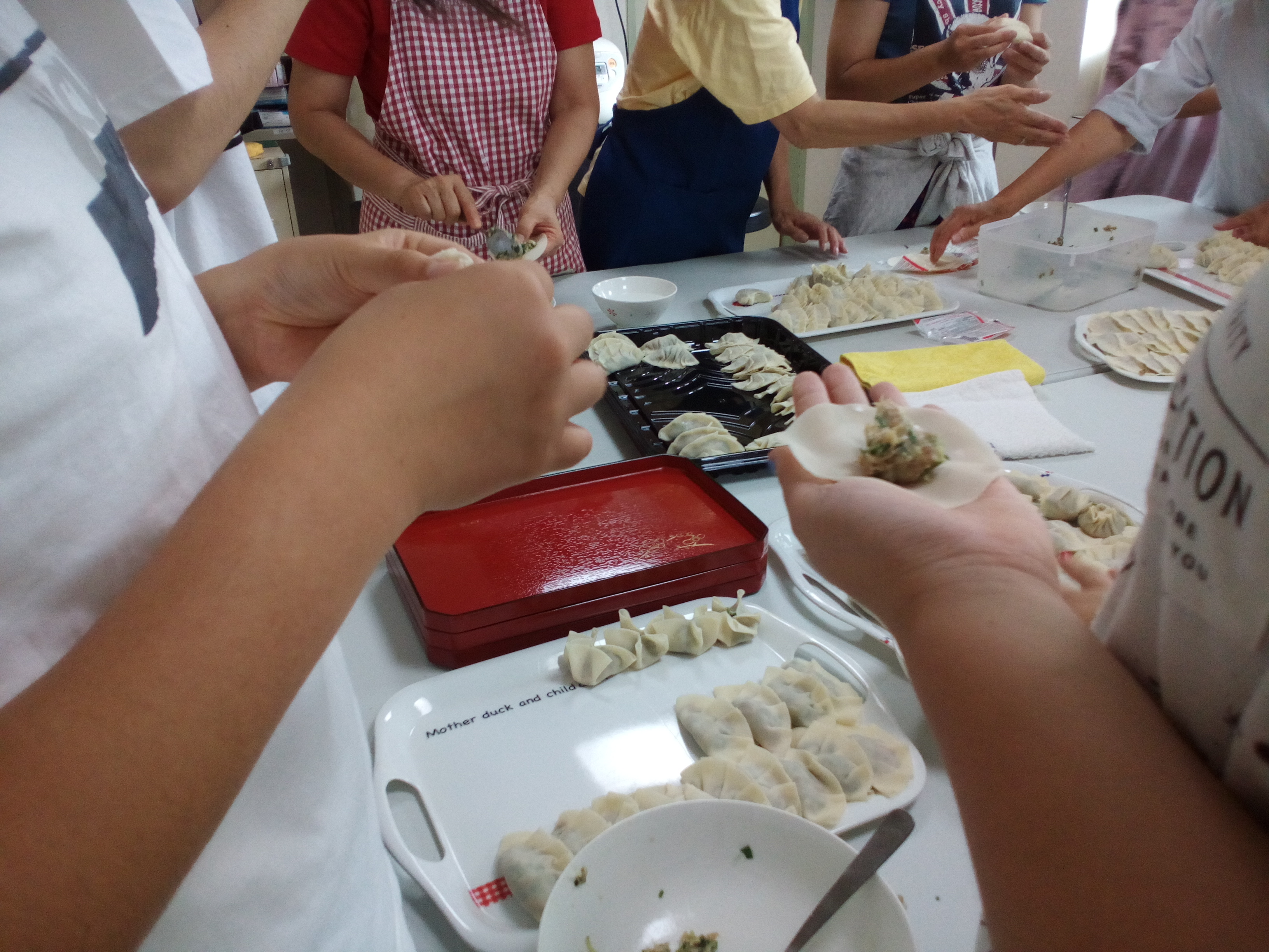 みんなでぎょうざを作って