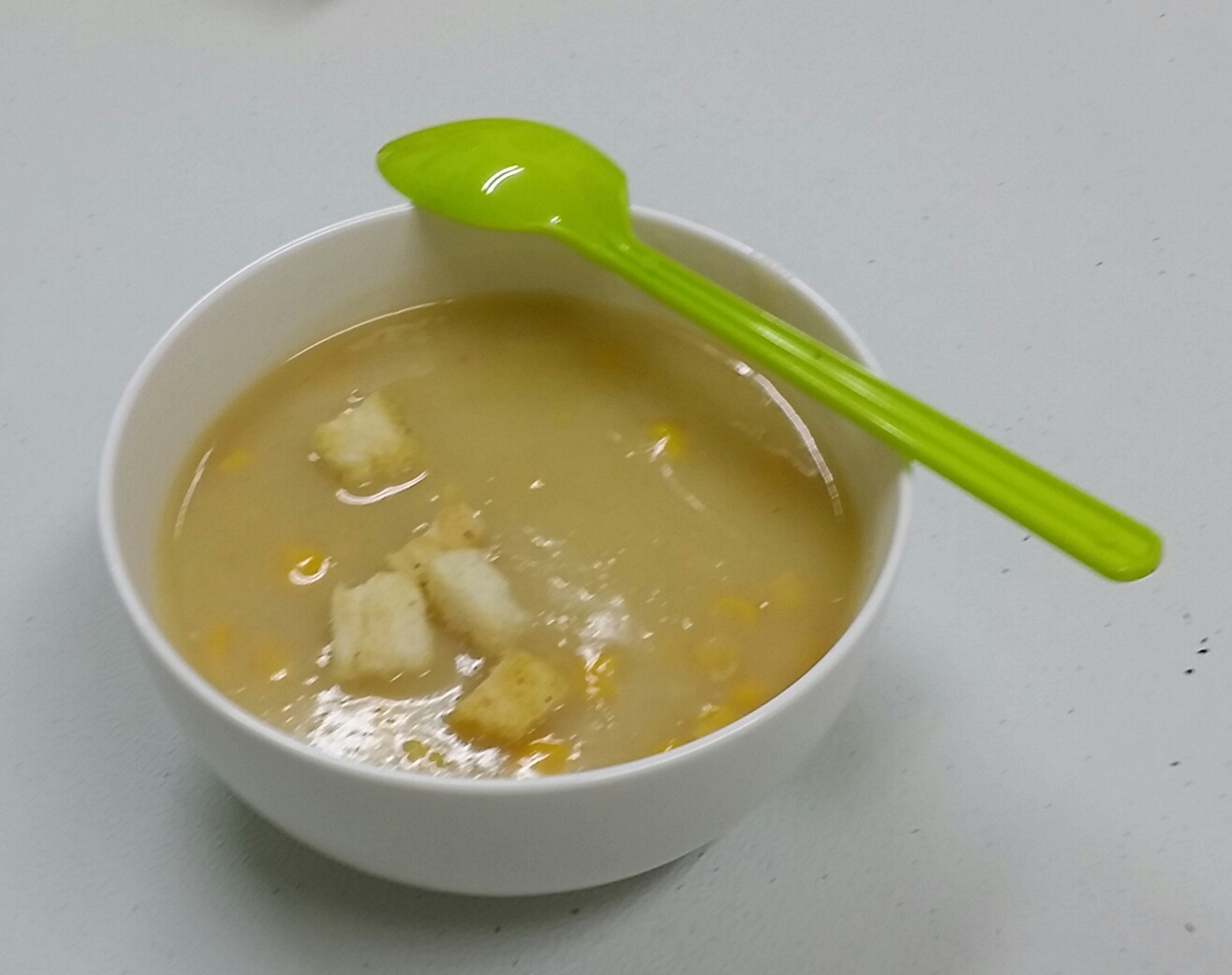ジャガイモポタージュ&コーンシチューを混ぜた「なんでもポンポンスープ」
