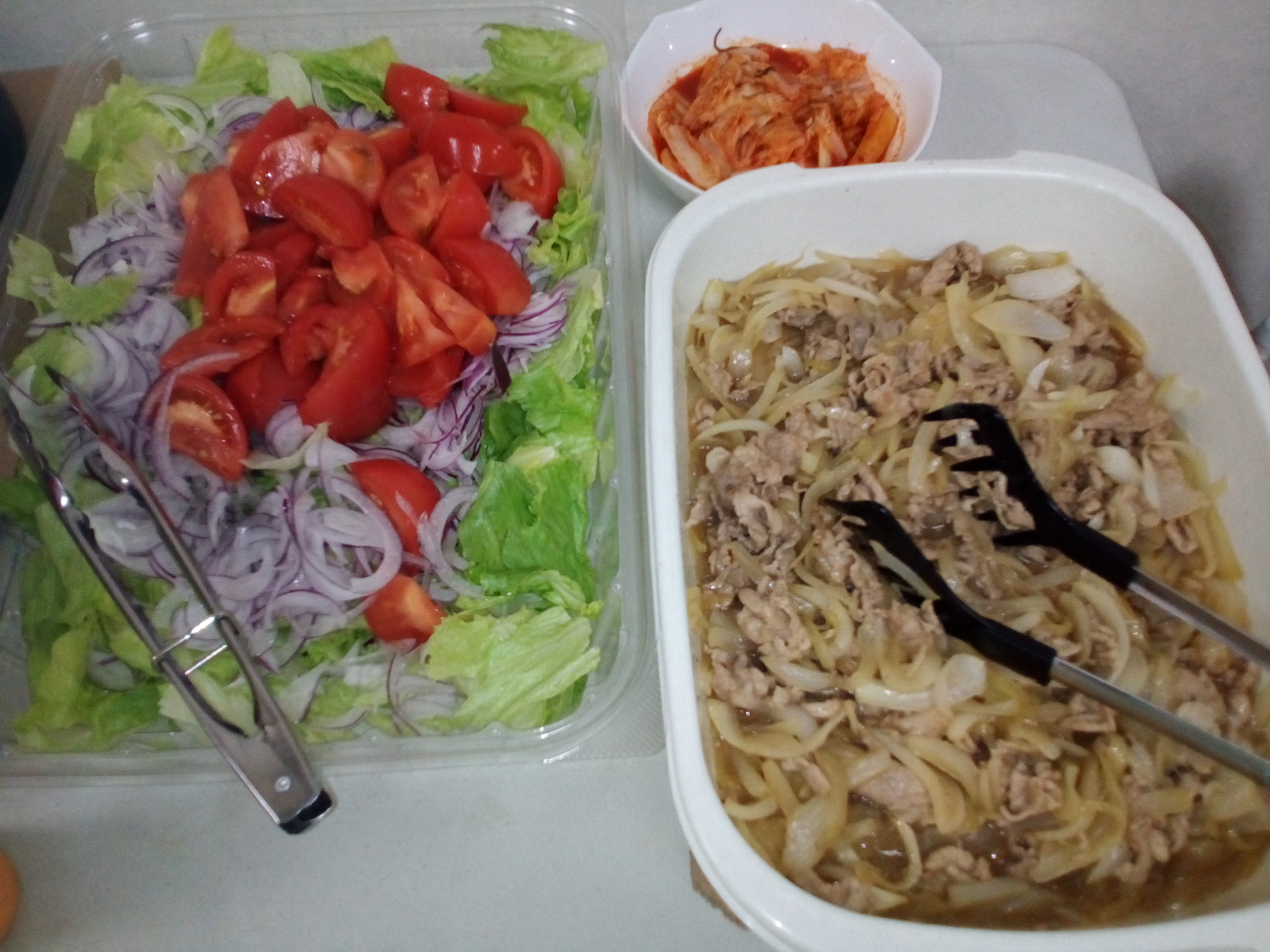 サラダに豚肉の炒め物にキムチ風和え物をバイキングで