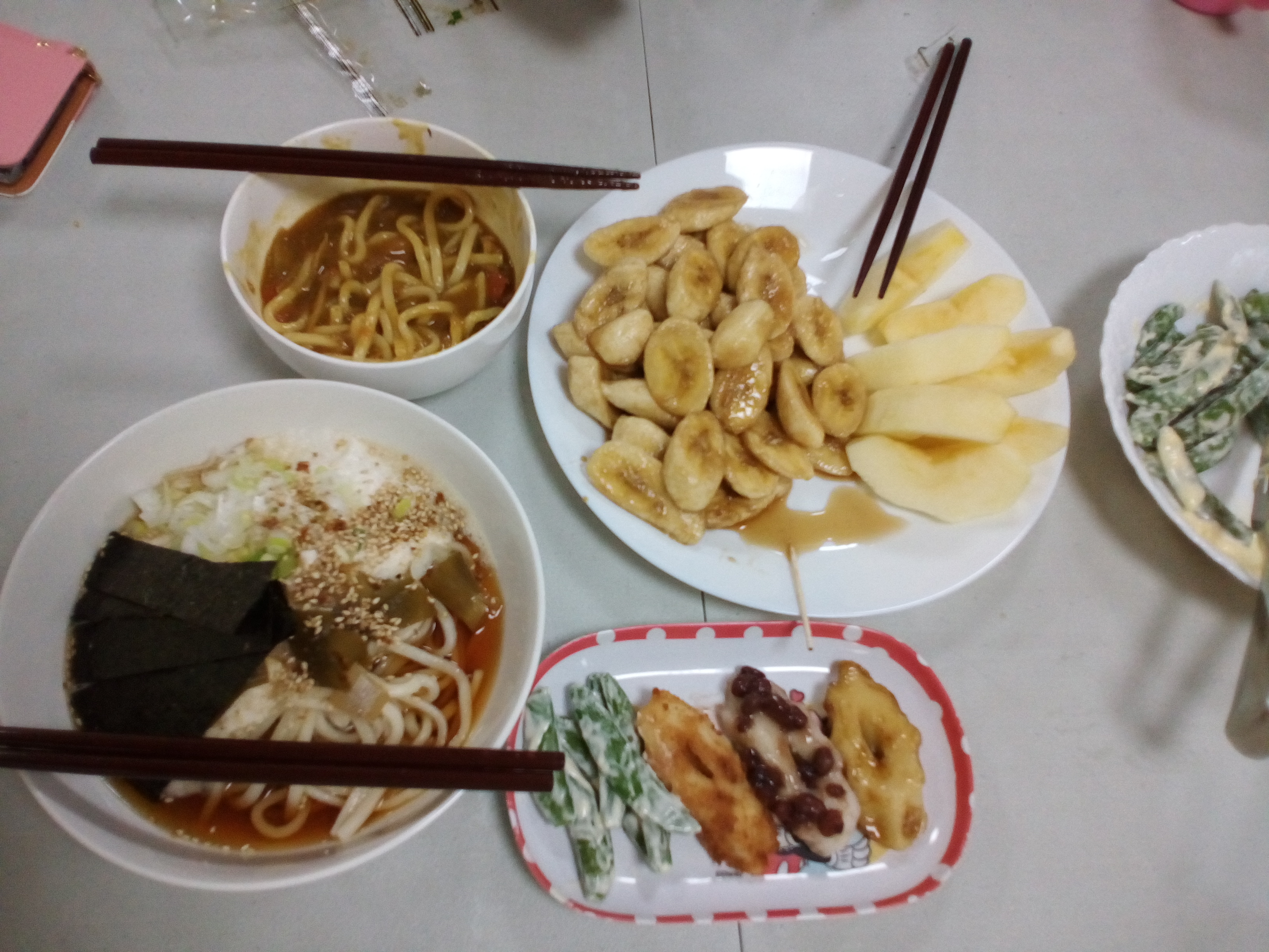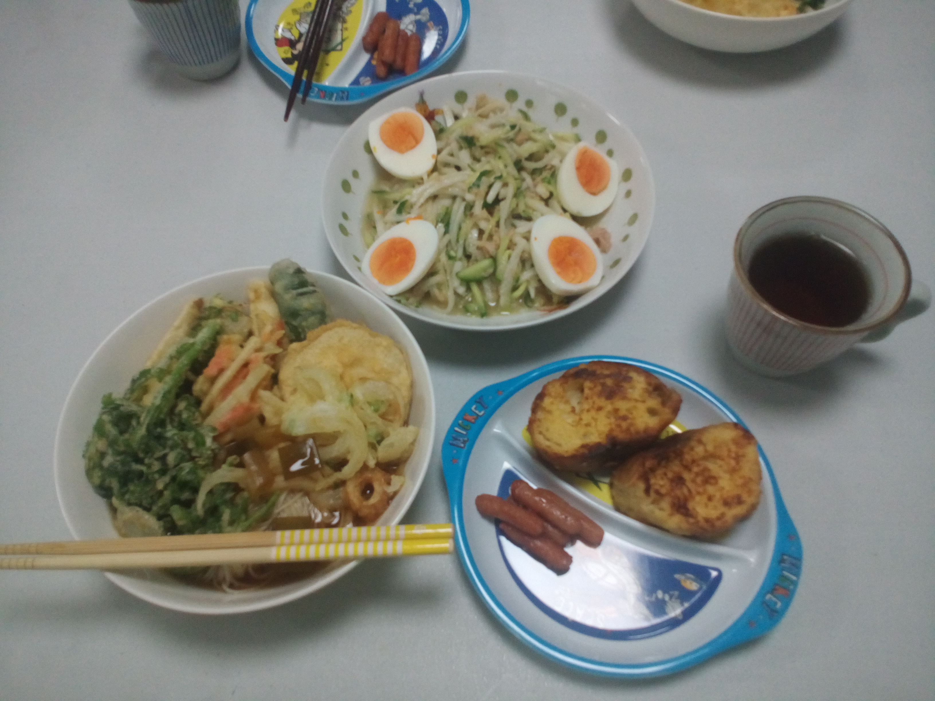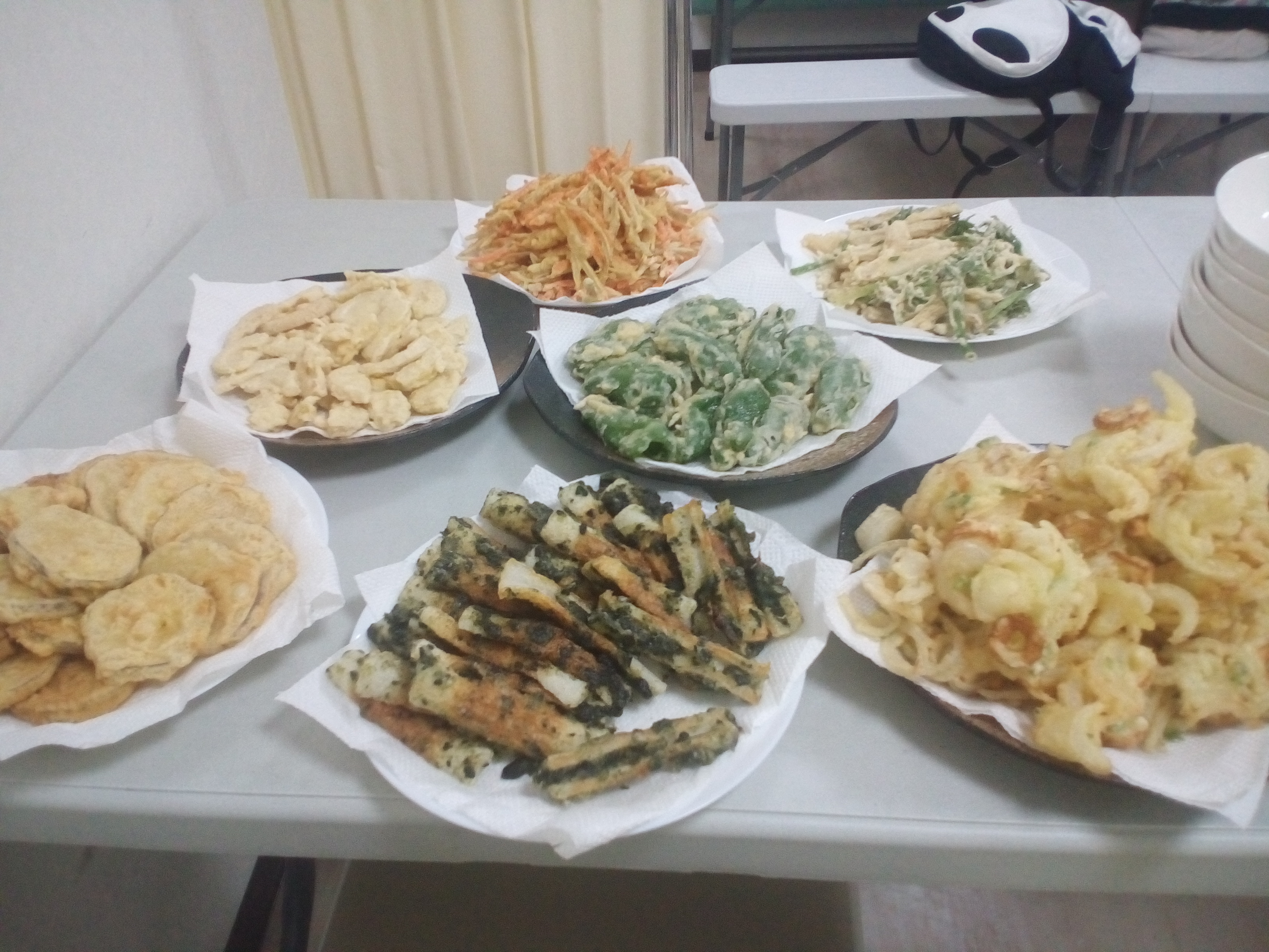 さつまいも・ちくわの磯辺揚げ・新玉ねぎと大根葉とちくわのかき揚げ