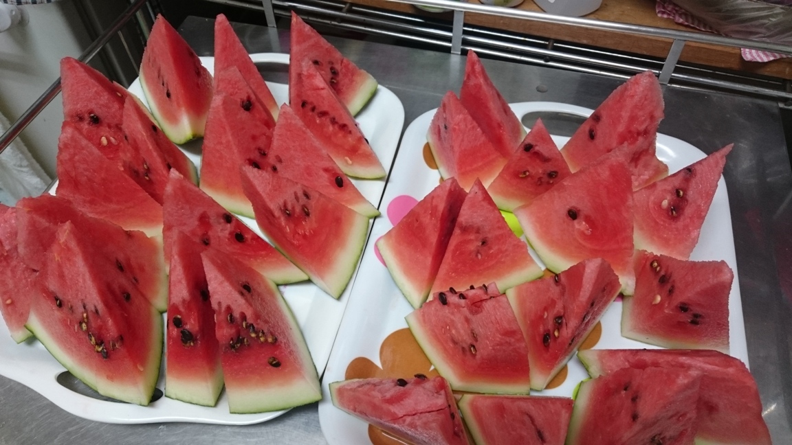 金の卵というスイカ等、子どもたち色んなスイカの味を楽しみました。