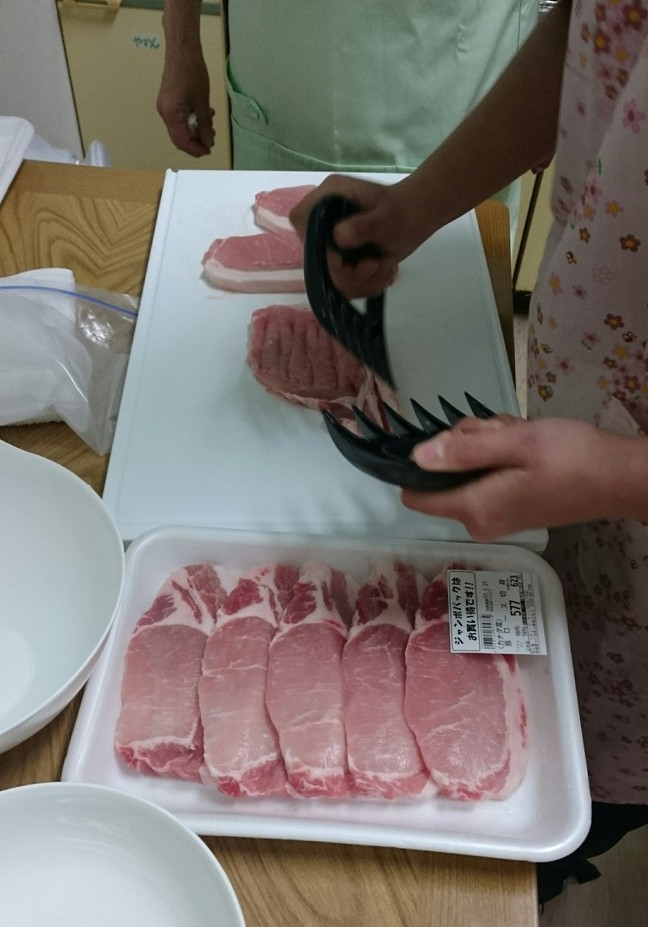頂いたロース肉を筋切り