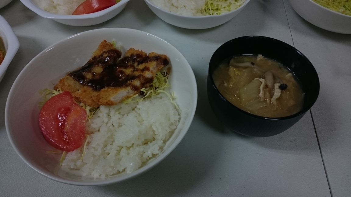 とんかつ、具だくさんみそ汁、
