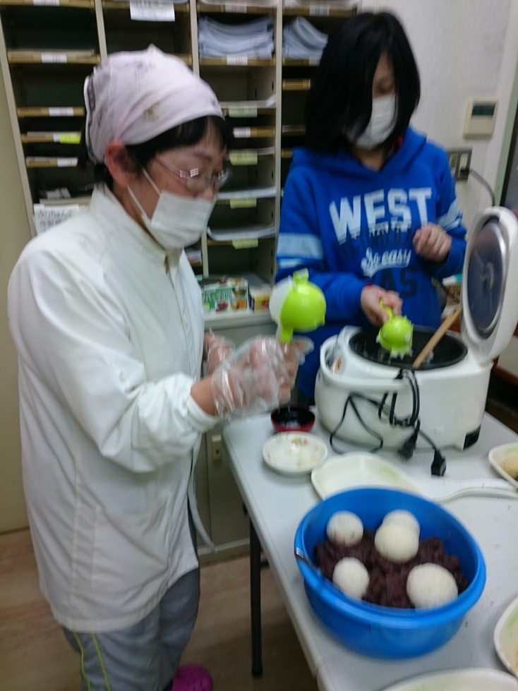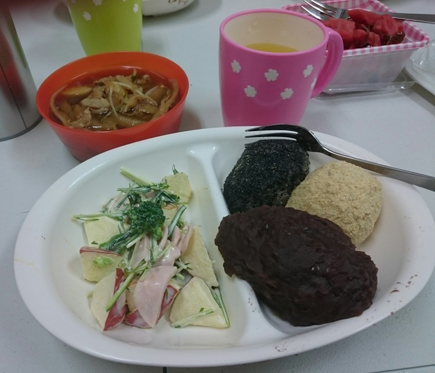 2日めは… 黒ゴマ、きな粉、あんこ、3種のおはぎが好評でした!