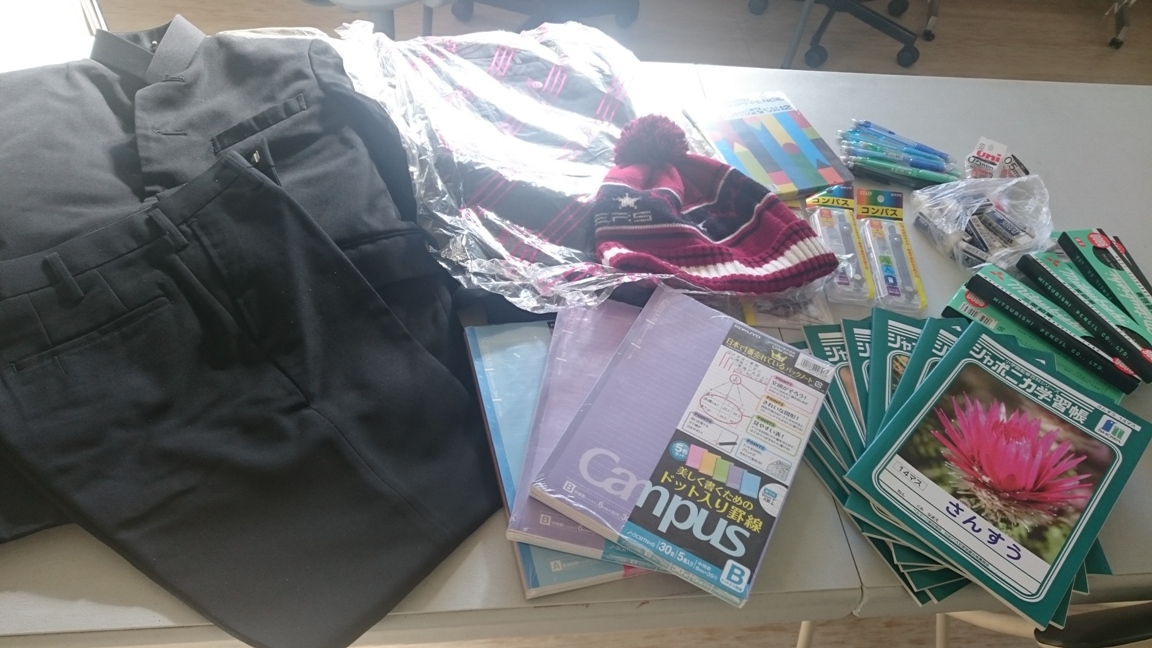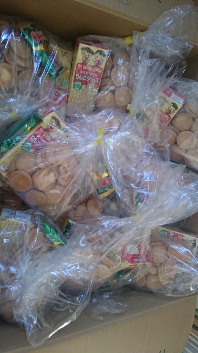 塩おむすびにして、ご支援で頂いた缶詰め、瓶詰めから