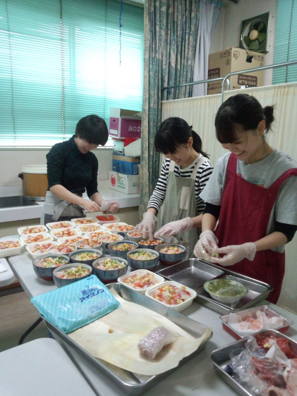 届きました。みんな明日の朝食用に真剣に選んでいました。