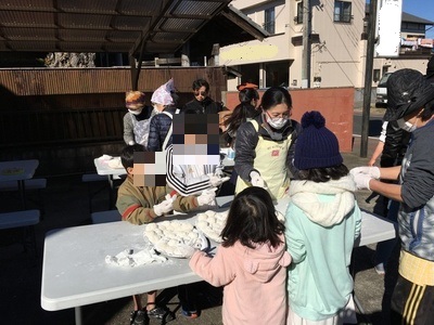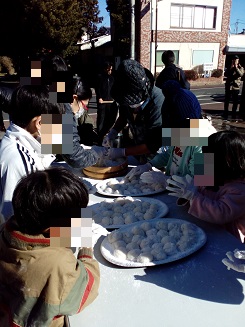 いつもはわんぱく男子も、お餅をまるめているよ(笑)