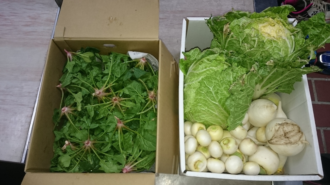 白菜、キャベツ、ほうれん草、カブ、バナナ