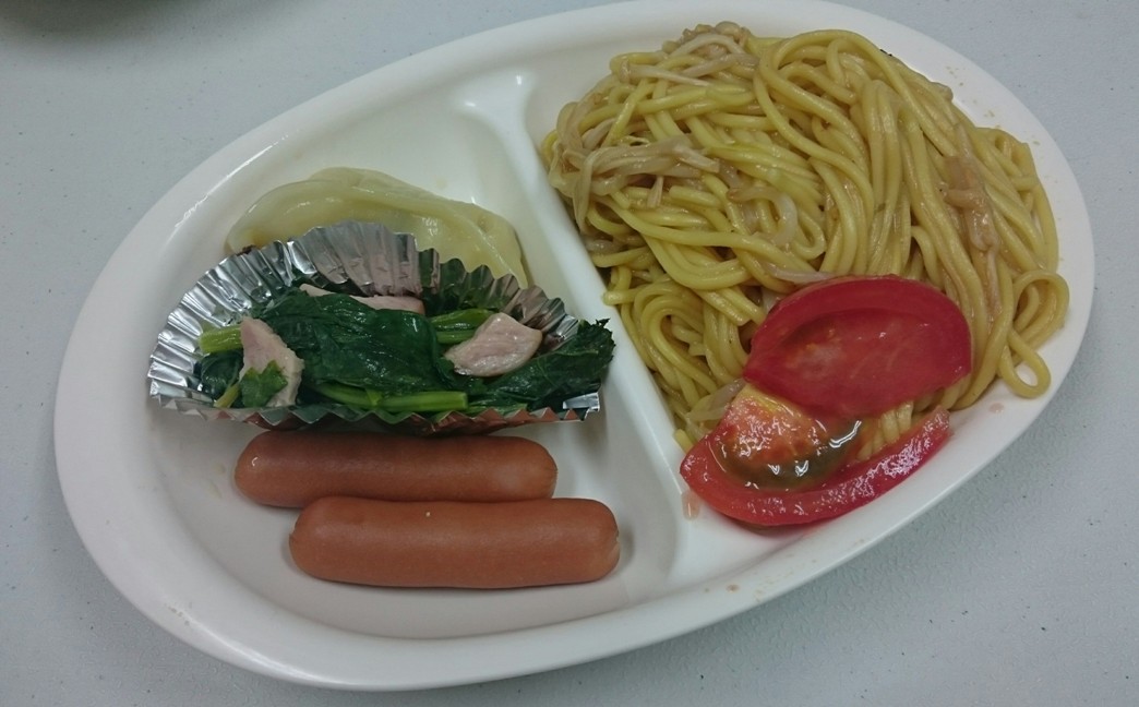 27日(木)は麺(冷やしラーメン)、ウインナー、餃子