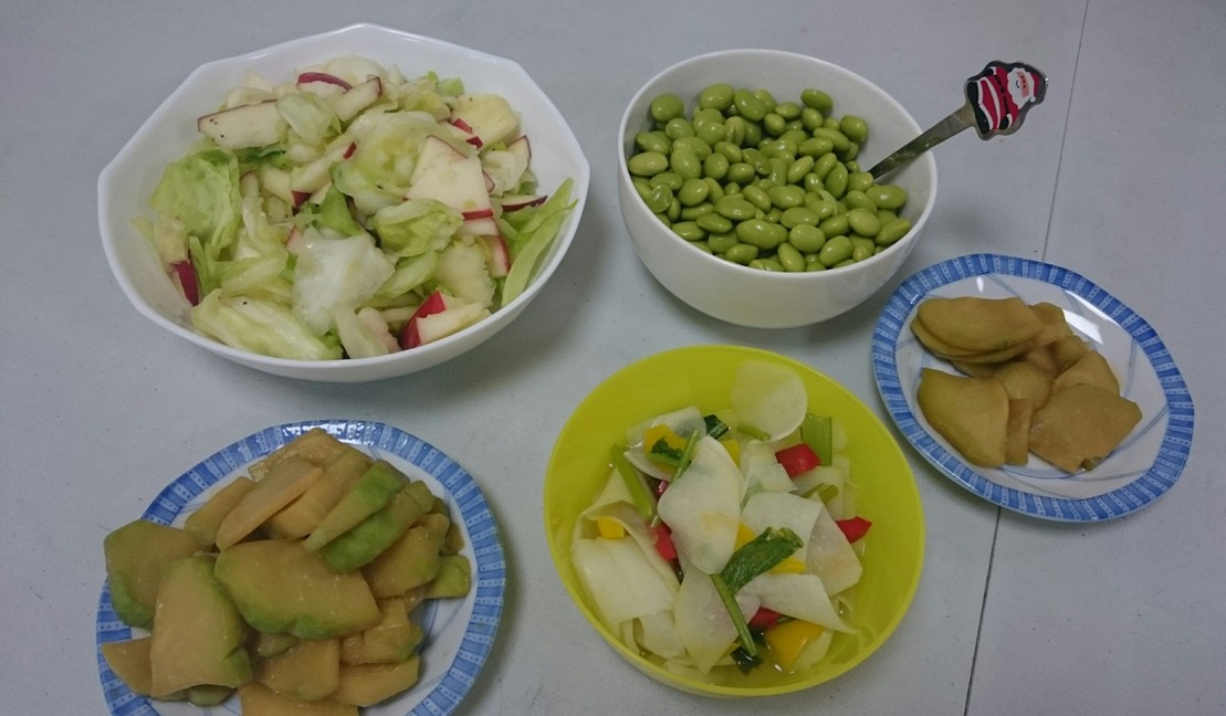 キャベツとリンゴのサラダ、はやと瓜のお漬物etc..