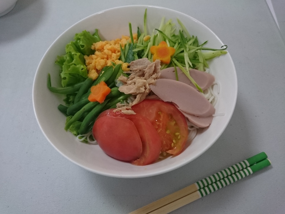 七夕の夜だったので五目ソーメンのにんじんは星形