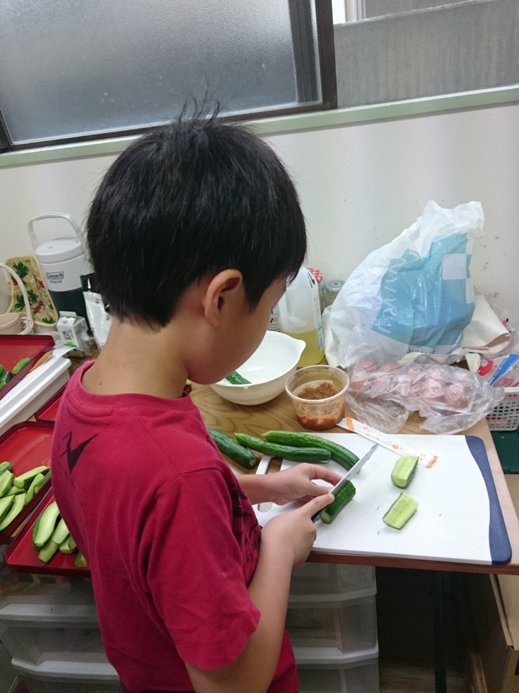 「僕が切る!」ときゅうりをカットしてくれたS君