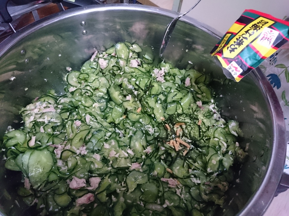 頂いた夏野菜でポテトサラダやきゅうりの浅漬けを作りました。