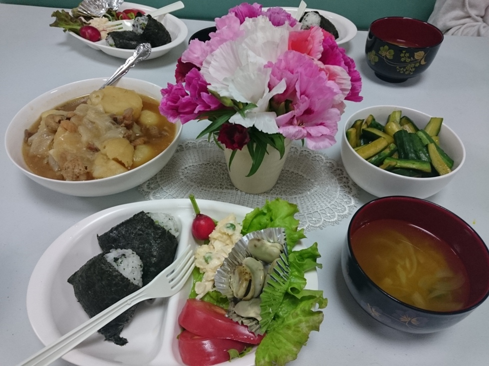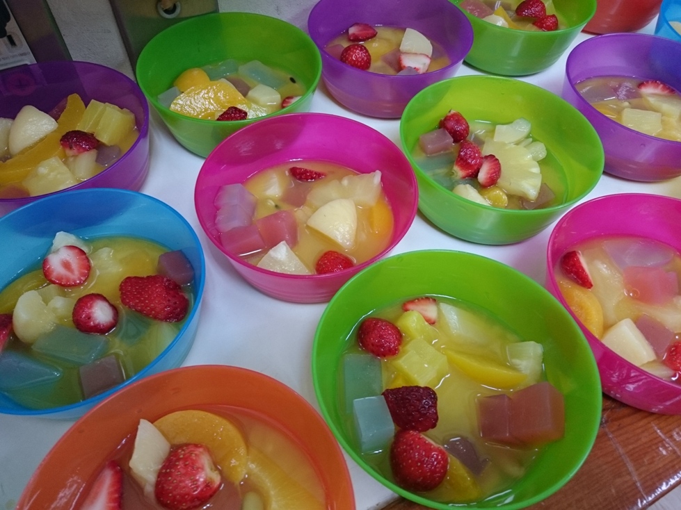 この日は子どもたち・スタッフ みんなで一緒に食べました。