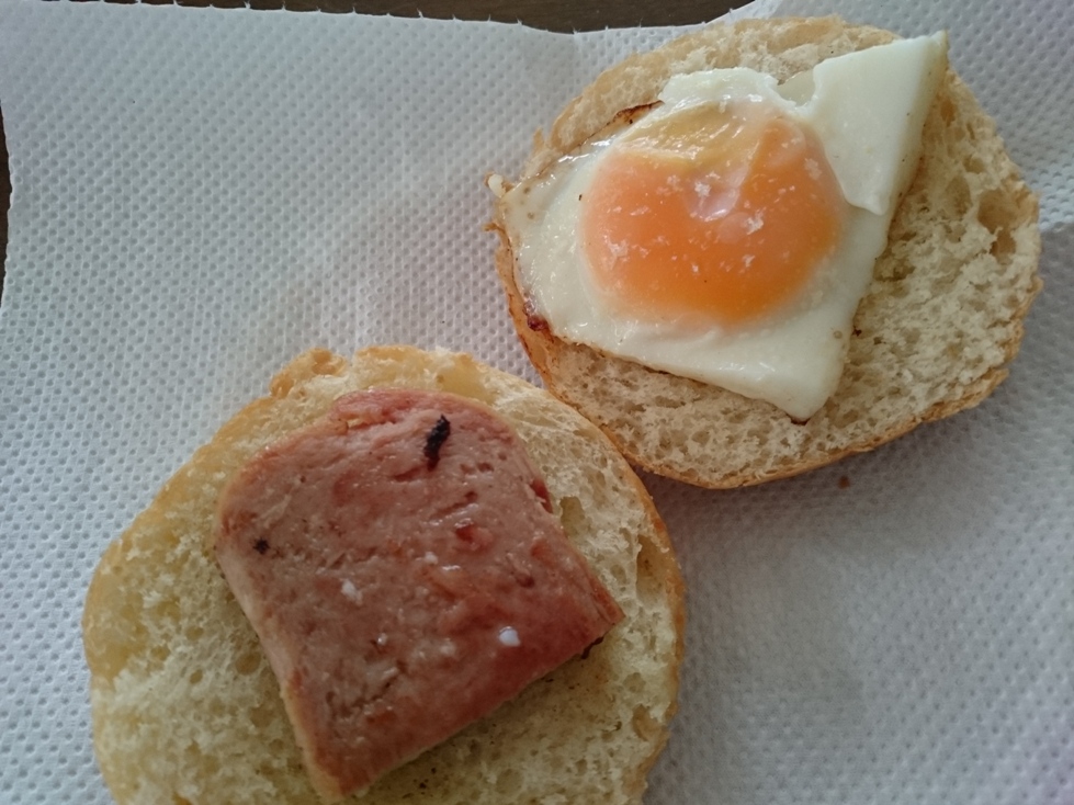 こんがり焼いたスパムと供にパンにサンド♪