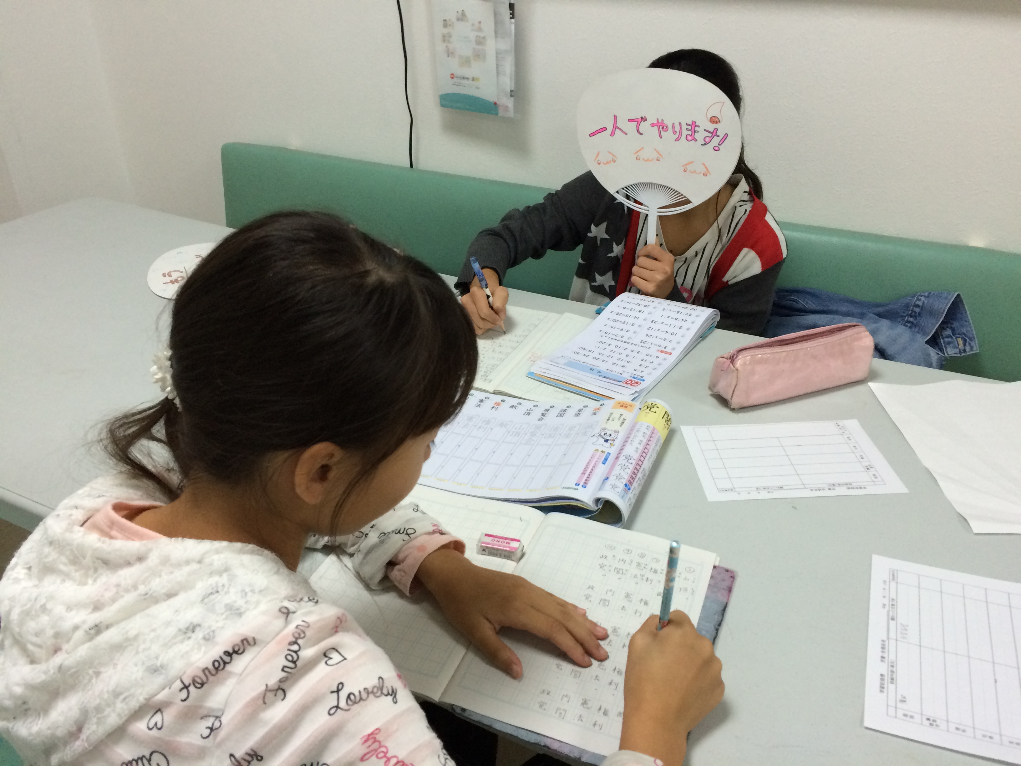 無料塾では、 みんなワーク類を持ってきて勉強しています。