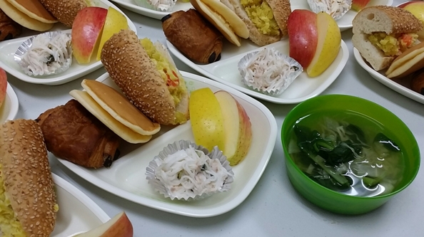 その日の子ども食堂は、フードバンクさんご寄付のライ麦パンやベーグルに