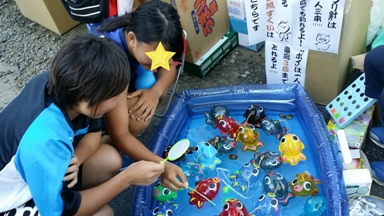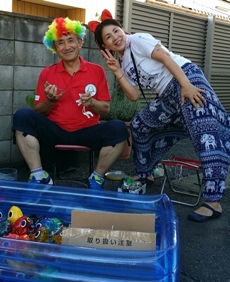 なつきくん、ひろこちゃんの合作「輪投げ」はおとなたちも遊んじゃいました。