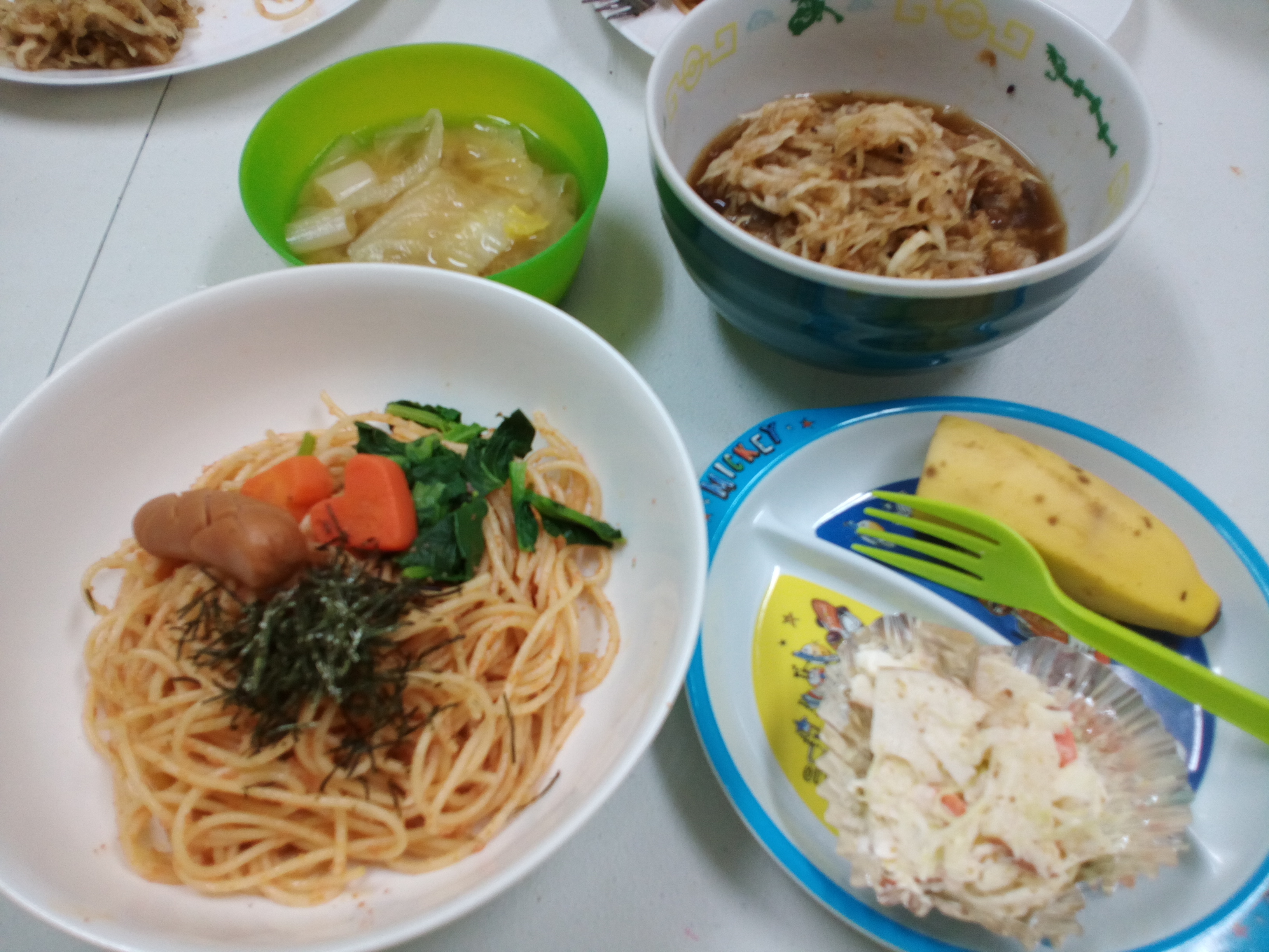 (2月14日は、辛子明太子スパゲッティ、大根しりしり、