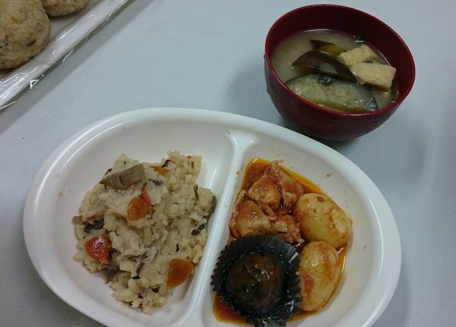 キッチンボランティアさんがジャガイモとトマト缶で煮込みました。