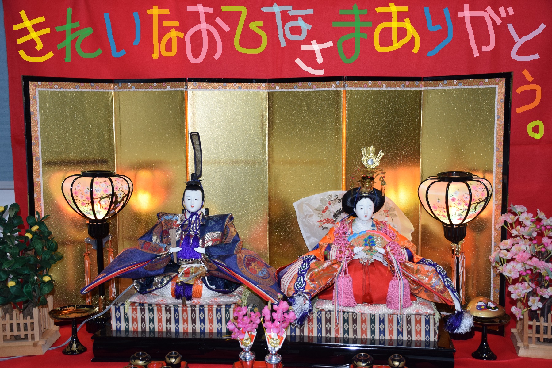 いつも無料塾に1番乗りの女の子は、生まれて初めてお雛様を飾ったんだ。